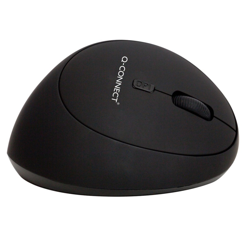 Ergonomic wireless vertical mouse , 6-button, battery-powered, for right-handed, black